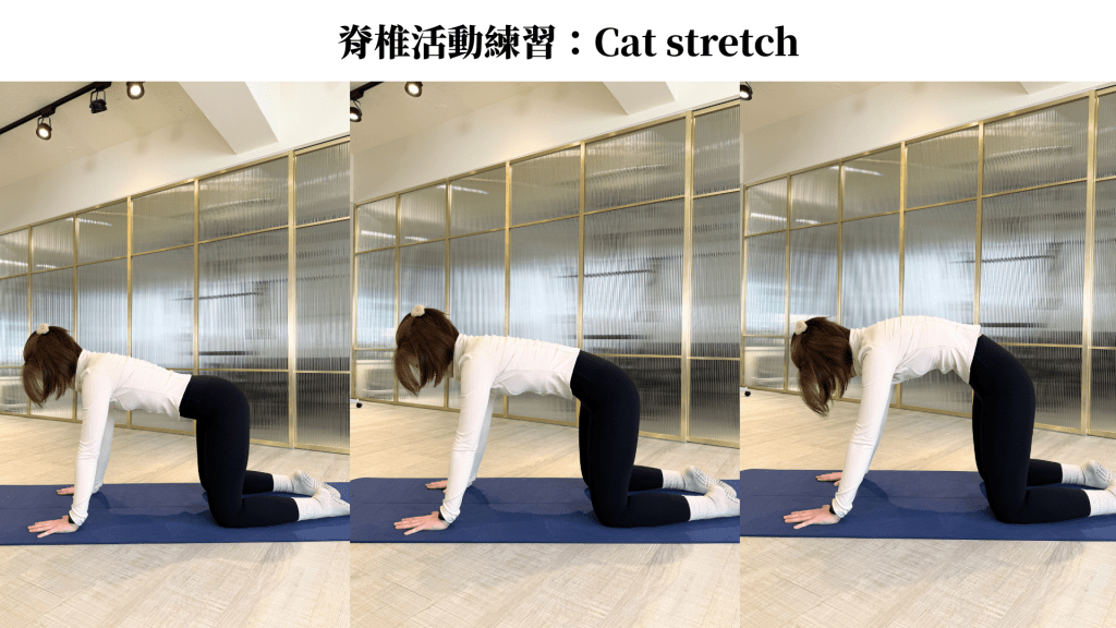 2. Spine mobility : hip rolls, cat stretch
